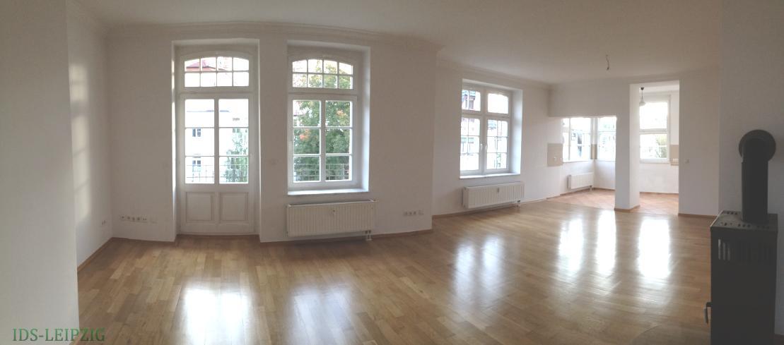 Den Feierabend am Cospudener See genießen Markkleeberg liegt unmittelbar vor den Toren von Leipzig und besticht durch seine umliegende Seenlandschaften und den dadurch gegebenen Erholungs- und Freizeitmöglichkeiten. Die großzügige 5-Raum-Wohnung befindet sich im 1. Obergeschoß und verfügt über einen großen Wohnbereich mit offener Küche (ca. 45 m²) sowie 4 weiteren Zimmer. Ein Bad mit Badewanne/ Dusche/Fenster sowie ein Gäste-Bad mit Dusche und 2 Balkone vervollständigen diesen Wohntraum auf ca. 170 m². Alle Wohnräume sind mit Parkett ausgestattet, Bad und Gäste-WC sind gefliest. Hinweis: Der Grundriss weicht im Bereich Wintergarten ab, dieser ist offen und wurde dem Wohn-/Küchenbereich mit zugeordnet.